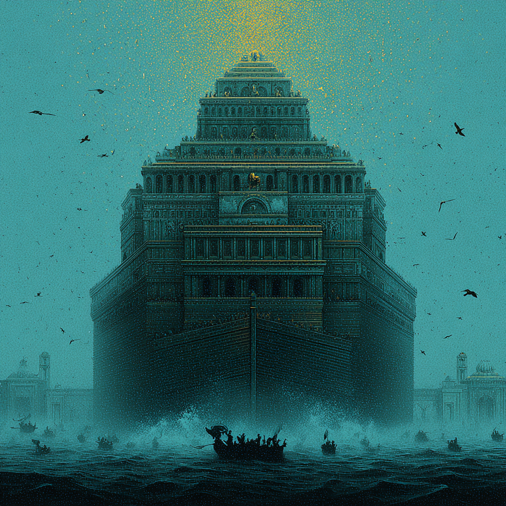 Utnapishtim, obedient and bewildered, gathered his family, craftsmen, and “all the seed of all living things” onto his colossal vessel. The heavens then opened, and the waters rose for six days and seven nights. Even the gods themselves were terrified by the tempest, huddling “like dogs” and weeping at the destruction they had wrought.